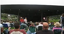 Planning for the arts center, designed by architectural firm DLR Group, began in 2002, and construction on the $150 million project started two years later.[2] The amphitheatre opened on July 4, 2006, with a performance by the New York Philharmonic.[1] On August 13, 2006, Crosby, Stills, Nash & Young performed before 16,000 fans at the new center, 37 years after their historic performance at Woodstock. For their encore, they performed the song "Woodstock".