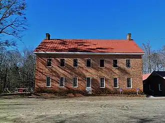 The complex is located at the junction of County Rd. 120 and County Rd. 129. It includes a two-story brick church from c.1818 built in vernacular Federal style, with brick laid in American bond. Its first floor walls are 18 inches (0.46 m) thick. It has interior end brick chimneys.[2]