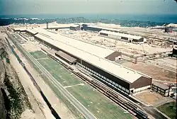 Aerial view of the mill area of the Burns Harbor plant circa 1964. The 160" plate mill is in the upper left. -