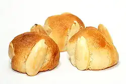 The name comes from the family of Bethmann.[5] Legend has it that Parisian pastry chef Jean Jacques Gautenier developed the recipe for banker and city councilor Simon Moritz von Bethmann in 1838.[6] Originally the Bethmännchen were decorated with four almonds, one for each son of Simon Moritz. After the death of his son Heinrich in 1845, the fourth almond was removed. However, this story is unlikely, since Simon Moritz had died already in 1826.