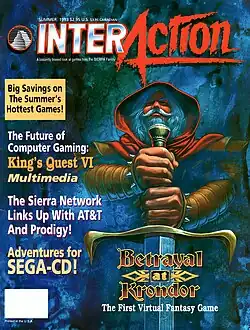 Betrayal at Krondor is an MS-DOS-based role-playing video game developed by Dynamix and released by Sierra On-Line in the summer of 1993. Betrayal at Krondor takes place largely in Midkemia, the fantasy world developed by Raymond E. Feist in his Riftwar novels. The game is designed to resemble a book, separated into chapters and narrated in the third-person with a quick-save bookmark feature.