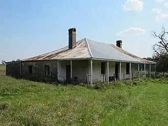 Cameron did not hold the property long, putting it back on the market in March 1839, but the description of the place in Cameron's advertisement was couched in slightly different terms to that given in Boland's advertisement of April 1837. Boland was selling a farm while Cameron was pitching a "handsome homestead". Cameron placed emphasis on the genteel nature of the property, stating that the house had been built within the last four years and being in full repair was "fit for the immediate reception of a respectable family". The house was described as "a stone and lime edifice". Boland's "eight good rooms" had become Cameron's "eight apartments, consisting of a parlour, a dining room, a drawing room and four bed rooms".[1]