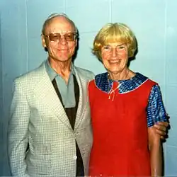 In her childhood Beulah Gundling was mainly interested in music and ballet. At the age of 14 she started to take swimming lessons after being encouraged by her parents to learn how to swim and dive. However, the first experiences with swimming were very negative for her, because she continuously sank in the water.[1] She started to read instructional books on swimming, decided to teach herself how to float and successfully continued this autodidactic learning in the following years. She attended several competitions and even won an Iowa AAU gold medal for the backstroke.[2] In 1938, she finished her education at Coe College and started to work as a secretary for the Chamber of Commerce in Cedar Rapids. To that time she began to find swimming laps boring and to develop her idea of combining swimming with music and dance. After studying a book about rhythmic swimming she created a routine of swimming strokes which were set to music. On the suggestion of her husband, coach and manager Henry Gundling, Beulah took part at the duet competition in synchronized swimming at the Outdoor Nationals in Des Moines in 1948 together with Noreen Fenner and placed 10th.[3] In the following years, Beulah increased her interest in performing solo routines, for which she designed her own costumes. She won several important competitions in North America, inter alia she took first place at the 1949 Canadian Synchronized Swimming Championships with a routine entitled The Swan after music by Camille Saint-Saëns. Moreover, she won the Outdoor solo title at the U.S. National AAU Synchronized Swimming Championships from 1950 to 1954. Gundling introduced solo synchronized swimming on an exhibition basis at the 1951 Pan American Games as well as the 1952 Helsinki Olympics, where she presented her program Thunderbird to music from the opera Natoma by Victor Herbert.[4] After winning the gold medal of the solo event at the 1955 Pan American Games Beulah Gundling finished her sports career.