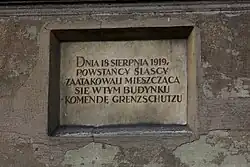 On the night of August 16, 1919 the First Silesian Uprising erupted when district commanders of the Polish Military Organization for the Rybnik and Pleß districts received orders to commence the uprising.[12]