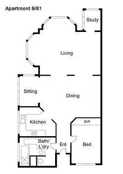 Most apartments are 1 or 2 bedrooms, tightly planned with a small kitchen, and bathroom, with the emphasis being on the living and bedroom spaces. Most apartments maintain a strong visual connection to the outside through balconies, opening to the land along or on upper levels sweeping views north towards the Yarra River and over the flat suburb of Richmond beyond.