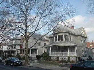 Originally Ackerson offered his houses in Beverley Square East for sale at $10,000 and up, and those in Beverley Square West at $6,500 and up;[9] when sales of the first houses in Beverley Square East were disappointing, he had the rest of that neighborhood developed with somewhat simpler houses by Lewis H. Pounds and Delbert H. Decker (it was completed in 1901), and modified his plan for Beverley Square West, building somewhat smaller and less distinctive houses.[1][10] The Beverley Squares were "Ackerson's major project";[3] his own home was in Beverley Square West, at 304 Marlborough Street (built in 1903), and Pounds, who later served as Brooklyn Borough President, had his home at 317 East 17th Street in Beverley Square East.[1] Beverley Square West also includes the "honeymoon cottage" built as a wedding present for a daughter of the Guggenheim family, at 305 Rugby Road.[11]
