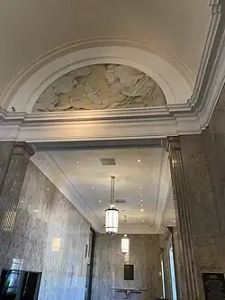 The post office was part of the planning for the Beverly Hills Civic Center in the 1930s, and the City of Beverly Hills bought the property from the Pacific Electric Railway Company in 1930 in preparation for the Civic Center; the property had been the railway's Beverly Hills station.[3] The post office was designed in an Italian Renaissance Revival style by architect Ralph C. Frewelling of Beverly Hills with Allison & Allison as consultants.[1][3] Built as a WPA project,[4] with Sarver and Zoss of Los Angeles as contractors,[3] the post office opened on April 28, 1934.[1]