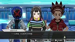 The game is based on the Beyblade X anime. However, the game's story is completely original and also includes original characters.[7][8] The player will get to choose between a male and female protagonist.[9] The protagonist will then inherit the Beyblade Shinobi Knife from his or her father.[10] The protagonist will then meet the members and the founder of Team Persona.[a]