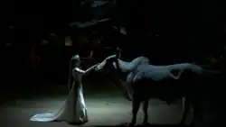 "Beyond Here Lies Nothin'" is the 12th and final episode of the second season of True Blood and the show's 24th overall.[1] The episode, which was written by Alexander Woo and directed by Michael Cuesta, originally aired in the United States on HBO on September 13, 2009. Like the first-season finale, the episode is divided almost in half structurally; the first half focusing heavily on Maryann and her attempts to bring new life to the god Dionysus by sacrificing Sam Merlotte in a strange ritual, while the second half deals with the aftermath of those events and how Maryann's presence in Bon Temps has affected their lives. The episode received generally positive reviews and received an Emmy nomination.[2]