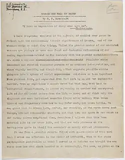 A former intern and a worker of a mental hospital relates his experience with Joe Slater, an inmate who died at the facility a few weeks after being confined as a criminally insane murderer. He describes Slater as a "typical denizen of the Catskill Mountain region, who corresponds exactly with the 'white trash' of the South", for whom "laws and morals are nonexistent" and whose "general mental status is probably below that of any other native American people". Although Slater's crime was exceedingly brutal and unprovoked, he had an "absurd appearance of harmless stupidity" and the doctors guessed his age at about forty. During the third night of his confinement, Slater had the first of his "attacks". He burst out from an uneasy sleep and into a frenzy which was so violent that it took four orderlies to restrain and strait-jacket him. For nearly fifteen minutes he gave vent to an incredible rant. The words were in the voice and couched in the paltry vocabulary of Slater but the onlookers could construe from the inadequate language a vision of: