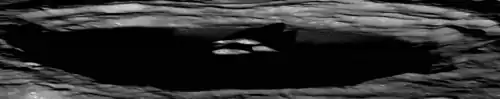 This is a relatively fresh crater with a nicely terraced inner wall. This terracing is most notable along the southeastern half of the crater, and nearly disappears along the north-northwest rim where the inner wall is at its minimum extent. The rim and inner wall have not been significantly eroded, and there are no craterlets of note along the rim.