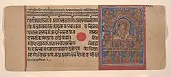According to the Śvetāmbara tradition, he was the author of the holy Kalpa Sūtra,[6] which describes the life of Mahavira and other Tirthankaras. It also lists down a Sthaviravali (a succession list of the names of the head of the Jain monastic order according to Śvetāmbaras, starting with Mahavira's Ganadhara (disciple) Sudharmaswami).[7] Śvetāmbaras consider Bhadrabahusuri to be a Sthavirkalpi monk (as described in the Ācārāṅga Sūtra, the Kalpa Sūtra, and the Sthananga Sutra), and thus, white-clad. Śvetāmbaras also consider him to have had been a Shruta Kevalin.