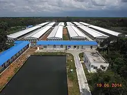 Notable establishments in the area include a crocodile breeding center in Hatiber, Mutalib Miah's Arabian date cultivation farm in Paragaon, the Mallikbari orange farm, and a rabbit breeding center in Habirbari. By 2014, there was a potential to export 4,000 crocodiles annually, with the one at Hatiber playing a crucial role in this endeavor. This export could generate an income ranging from three to 40 million dollars. Several European countries have already expressed official interest in importing crocodiles from Bangladesh.[17]