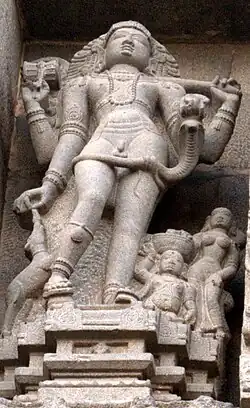 Bhikshatana (Sanskrit: भिक्षाटन; Bhikṣāṭana; literally, "wandering about for alms, mendicancy"[1]) or Bhikshatana-murti (Bhikṣāṭanamūrti) is an aspect of the Hindu god Shiva as the "Supreme mendicant"[2] or the "Supreme Beggar".[3] Bhikshtana is depicted as a nude four-armed man adorned with ornaments who holds a begging bowl in his hand and is followed by demonic attendants and love-sick women.