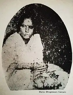 Shaheed (martyr) Bhogeshwari Phukanani (1885 – 20 or 21 September 1942[1][2]) was an Indian independence movement activist during the British Raj and played a part in the Indian independence struggle.