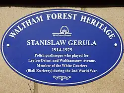 ![]() A plaque dedicated to the White Courier Stanisław Gerula, in Waltham Forest | |