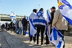 - ^ The text on the cardboard reads "Where are Shiri, Yarden, Ariel, and Kfir Bibas?"