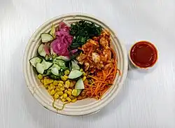 Bibibop Asian Grill, also known as Bibibop, is an American fast casual restaurant chain specializing in customizable Korean rice bowls. As of 2025, it has 74 locations. Its name derives from bibimbap, a Korean rice dish made with seasoned vegetables, chili pepper paste, and sometimes egg and meat.[1][2][3]