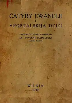 The first translation into Belarusian was by Francysk Skaryna. He printed his first book titled The Psalter, in the Old Belarusian recension of Church Slavonic on August 6, 1517, in Prague. He continued his printing work in Vilnius. The culmination of his life's work was a printing of the Bible in the Old Belarusian recension of Church Slavonic.[1] From 1517 to 1519 he printed 23 books of the Bible. Belarusian bible was the first translation in an Eastern Slavic language and one of the first among European languages.