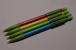 In 2021, Bic introduced an eco-friendly stationery product line called Bic ReVolution. Products sold under this line, including ball and stick pens, mechanical pencils, permanent markers and correction tape, were made using at least 50% recycled plastic, as well as the paperboard used in all of the packaging being made of 100% recycled material.[47][48] In 2022, Bic joined One Percent for the Planet, an environmental organization in which its members contribute at least one percent of their annual revenue to protect the environment. As a part of joining, one percent of annual sales from BIC ReVolution goes towards supporting environmental nonprofits.[49]