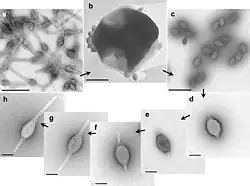 - ^ a b Wang, F; Cvirkaite-Krupovic, V; Vos, M; Beltran, LC; Kreutzberger, MAB; Winter, JM; Su, Z; Liu, J; Schouten, S; Krupovic, M; Egelman, EH (2022). "Spindle-shaped archaeal viruses evolved from rod-shaped ancestors to package a larger genome". Cell. 185 (8): 1297–1307.e11. doi:10.1016/j.cell.2022.02.019. PMC 9018610. PMID 35325592.