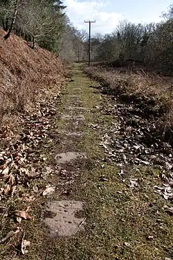 The Bicslade Tramroad was a wagonway built by the Severn and Wye Railway (S&WR) in the Forest of Dean, Gloucestershire, England. The first section of the line was opened in 1812 as a branch of the S&WR plateway from Lydney to Lydbrook, which had opened in 1810.[1] It was expanded over time to serve the collieries and quarries in the Bixslade valley (although the S&WR referred to the line as the Bicslade Tramroad); the last stretch, to Bixhead Quarry, opened in 1855. Stone traffic ceased in 1944 and coal followed in 1946.[2]