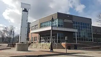 The high school moved out of the Alfred Street building in the 1960s to its present location farther away from the Downtown core.[4] This coincided with the establishment of the Biddeford Regional Center of Technology in 1969[7] located at the same location.