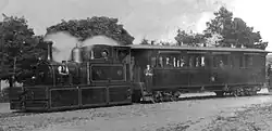 Finally the Bideford, Westward Ho! & Appledore Railway was incorporated on 21 May 1896 by the Bideford, Westward Ho! and Appledore Railway Act 1896 (59 & 60 Vict. c. xviii), with its head office address at the Electrical Federation Offices in Kingsway, London WC2.[4] Soon after the line passed to the British Electric Traction Company (BET). It was not until 24 April 1901[5] that the single track line was opened as far as Northam, although the first trial train ran with a few friends of the directors in January 1901. The first train, pulled by Grenville was played off by Herr Groop's German Band which had been hired for the season and it reached speeds of 36 mph (58 km/h) on its inaugural run. The remaining extension to Appledore finally opened in 1908, on 1 May,[6] costing £10,000.