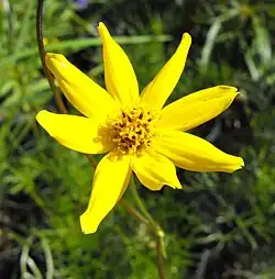 Bidens nudata is a species of perennial plant in the family Asteraceae commonly known as the Cape beggar's tick or Baja tickseed. This species is endemic to the Sierra de la Laguna and the Sierra de las Cacachilas of Baja California Sur, Mexico.[1] It is characterized by a mounding habit, pinnate green leaves and large yellow daisy-like flowers. This species has found uses in horticulture as an ornamental, providing a drought-tolerant and durable plant for the garden.[2]