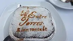 Bienmesabe is a popular dessert in the cuisine of the Canary Islands, where it is served with cat's tongue biscuits.[18][19][20][21][22][23] Cookies can be served on the side or crushed and served over dessert.[24] It has been described as the "most famous" dessert in Canarian cuisine.[25]
