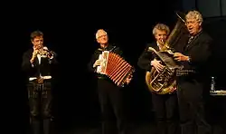 Biermösl Blosn was a Bavarian musical and cabaret band known for combining satirical texts with traditional folk music.[1] It was founded in 1976 by three brothers - Hans, Christoph and Michael Well - and often works with political cabaret artist Gerhard Polt. The name derives from "Beerenmoos" (berry bog), a part of the Haspelmoor in the district of Fürstenfeldbruck that was planned to be transformed in a large airport and a waste dump, and "Blosn", a Bavarian word for "group".[2]