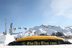 BigAirBAG is a Dutch sports equipment manufacturer which produces a large, inflatable cushion. The company's product, also called BigAirBAG (BAB),[1] is intended to soften and secure the impact from landing tricks as part of a variety of extreme sports including snowboarding, skiing, BMX, mountain biking, mountain boarding and indoor climbing.[2]