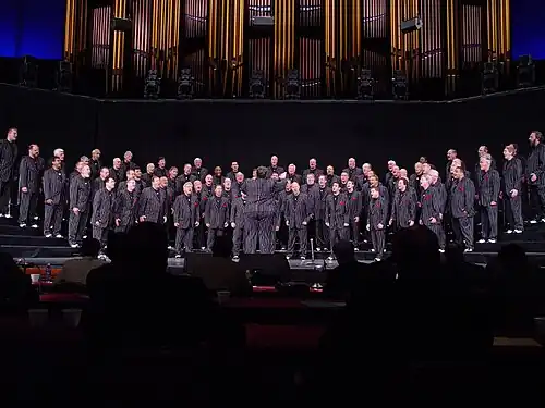 For several years, the chorus has regularly participated in the holiday concert series at the South Street Seaport, including the Living Christmas Tree—a group of carolers arranged in a tree, accompanying the first public Christmas tree in the city to be lit during the winter holiday season.[1]