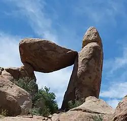 The park has several hot springs, including the springs in the Hot Springs Historic District. The main hot spring is called Hot Springs; it is also known as Bocadillas Hot Springs and Langford Hot Springs. Hot Springs is on the National Register of Historic Places.[36] The hot springs were the first major tourist attraction in the Big Bend area before the national park was established. In 1909, J.O. Langford began developing the springs. There was a small stone soaking tub of local stone from the time before Langford's development was excavated at the site. A dugout shelter existed at the site that the Langford family renovated as a residence. The Langfords then constructed an adobe house, a stone bathhouse, and bathing shelters made of brushwood. Later in 1927 they rebuilt the bathhouse and built a store and a motor court with seven attached cabins.[37]