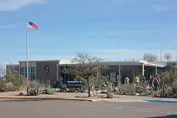 San Vicente Independent School District is based on the park grounds.[43] San Vicente ISD's facility moved to the Panther Junction area circa 1951 so children of park employees had a local school.[44] Much of the park is in San Vicente ISD while other parts are physically in Terlingua Common School District.[45] High school aged students from San Vicente ISD attend high school at Big Bend High School of Terlingua CSD.[46]