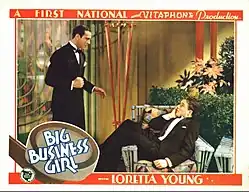 Big Business Girl is a 1931 American pre-Code First National sound comedy film directed by William A. Seiter and starring Loretta Young, then eighteen years old. It was released theatrically through First National's parent company Warner Bros.[1]