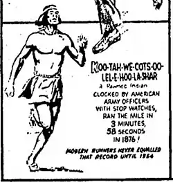 - ^ "Milesplit Discussion Board: First Sub 4 Minute Miler- 1876 Big Hawk Chief-US Army Certified this Record!". Texas MileSplit. Retrieved 2020-11-11.