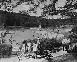 The community of Loyston (initially known as Loy's Crossroads), now under the lake just north of the park, was established by John Loy in the early 19th century.[8] The Loy and Sharp families both operated iron furnaces using ore mined along Big Ridge, creating mostly tools and household items.[9] By the early 20th century, Loyston had grown into a regional trading center for the Big Ridge area.[10]