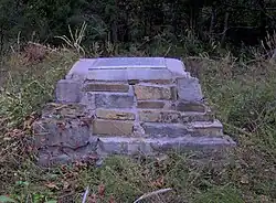 The Norton Gristmill is the park's most prominent historical feature. The mill was built in 1825 by Tink McCoy and later purchased by Lewis Norton. The mill is now mostly a replica, although the original mill race and millstones remain.[15] Other historical features include Indian Rock, atop Big Ridge, where a plaque marks the site of the 1794 ambush of Peter Graves. A small monument at the now-disinterred Lon Sharp Cemetery in the northeast section of the park recalls the 18th-century Sharp's Station, which was believed to have been located near the cemetery. Norton Cemetery houses the grave of Maston Hutcheson (1826–1910), who according to local lore is responsible for hauntings in the area. A few minor remains of Hutcheson's house are still visible at the junction of the Ghost House Loop Trail and the Big Valley Trail connector.