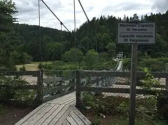 The suspension bridge can be accessed by the Suspension Bridge Trail. This trail begins at the Fundy Trail Parkway parking area P8 near the Mitchell Franklin Bridge.[2]