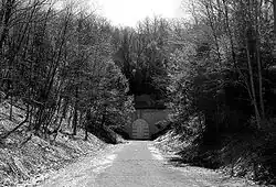 The Big Savage Tunnel is a rail trail tunnel located about 9 miles (14 km) southeast of Meyersdale, Pennsylvania. It, as well as the Pinkerton Tunnel, Borden Tunnel, and Brush Tunnel are part of the Great Allegheny Passage trail.[2] It was originally built for the Connellsville subdivision of the Western Maryland Railway.[3]