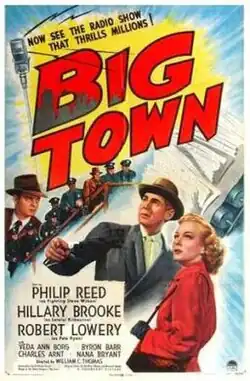 Big Town is a 1947 American crime film directed by William C. Thomas and written by Daniel Mainwaring and Maxwell Shane. The film stars Phillip Reed, Hillary Brooke, Robert Lowery, Veda Ann Borg, Byron Barr and Charles Arnt. The first in a series of four films based on the long-running radio program Big Town, it was released on May 23, 1947 by Paramount Pictures.[1][2][3]