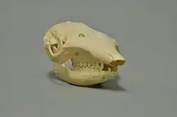 The genus Chaetophractus consists of two or three species: C. vellerosus (the screaming hairy armadillo), C. nationi (the Andean hairy armadillo, which may actually be a population of C. vellerosus[8]), and C. villosus. These species are recognized by the large amount of hair that extends all over their bodies, but especially on their undersides. The skulls follow the same patterns as other dasypodids, but females exhibit longer bones in the rostrocaudal plane, which is one of the key characteristics that shows the sexual dimorphism of these species. Not much is known about the cranial morphology of these species, especially bone descriptions. More research is being done to better describe these species and the skeletal differences between them. For now, body size, habitat, and behaviors are the best way to discern the differences.[9]