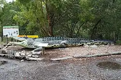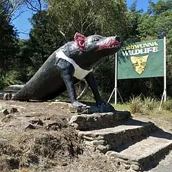 | Ploddy the Dinosaur | Somersby | 1963 | 4.8×2 m (15.7×6.6 ft) | Situated in the Australian Reptile Park, and commissioned by the Park's founder, Eric Worrell. The concrete structure, based on the shape of a Diplodocus, is 30 metres long and weighs almost 100 tonnes.[30] | |