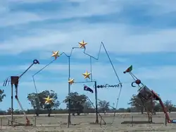 | The Big Peg | Canowindra | 2017 | A giant clothes peg located in a field beside the road between Canowindra and the village of Cargo. Designed by the Stacey Family and fabricated by Jake Willis of Canowindra it was inspired by a similar structure in Belgium.[31][32] | ![]() | |