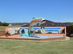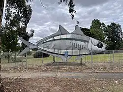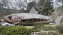 | The Big Trout | Adaminaby | 1973 | 10×3 m (32.8×9.8 ft) | Designed by Andy Lomnici, the Big Trout is located in the town of Adaminaby, near Lake Eucumbene in the Snowy Mountains. It was built from fibreglass over a steel frame, completed in 1973,[46] and repaired and repainted in 2023.[47] | ![]() |