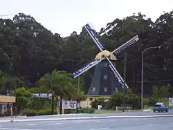 | Big Ayers Rock | North Arm Cove | 1990 | This 1:40 scale model of Uluru was formerly an attraction at Leyland Brothers World, and later formed the roof of the Rock Restaurant. Technically not a "Big Thing" (as it was substantially smaller than the item it is modelled on), the Rock Restaurant was loosely grouped with the big things as an object of roadside art. It was destroyed in a fire on 31 July 2018.[13] | ![]() | |
