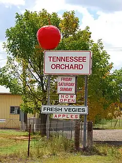 | Big Apple | Batlow | Located in the middle of an orchard about 3 km north of Batlow, without public access. Only its top is visible from Batlow-Tumut Road, as it is largely blocked by apple trees.[11] | |||