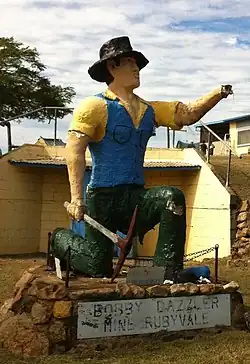 | The Big Bogan | Nyngan | 2015 | 5.96 metres (19.6 ft) high | The Big Bogan is the brainchild of Reverend Graham McLeod from Nyngan's St Mark's Anglican Church.[15][16] Located on Pangee Street next to the railway lines. In 2022 a dog was added.[17] | ![]() |