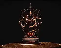 The trophy was revealed on 31st July which had a miniature of a person sitting on throne royally with its face covered or masked.